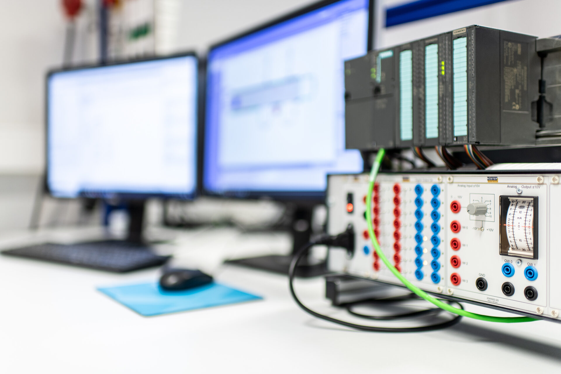 The laboratory for electrical and automation engineering combines content from mechanical engineering, electrical engineering and information technology. Students apply their theoretical knowledge here in a practical way - from the basics of electrical engineering, electrical drives and programmable logic controllers (PLCs) to the simulation of automated processes using software tools such as Scilab, Octave and Matlab. The laboratory thus promotes interdisciplinary training and prepares students specifically for modern industrial applications.