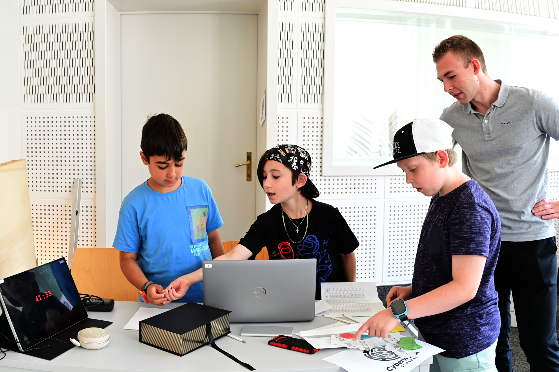 On the first day, they learned about and discussed current topics in the digitalized world, such as "Data and its processing", "IoT and networked devices" and "Artificial intelligence". The IDiAL team used the example of cars parked in a parking lot to show how we encounter computer science every day and how we can influence it ourselves. Collecting data from this and recognizing correlations in the data are processes that the students also find in their personal video recommendations from their favourite apps such as TikTok. Finally, they ventured into a data adventure in an escape room with "CyberWatch Global" to save the internet from intelligent hackers. The students used the knowledge they had gathered to create posters with the help of AI.