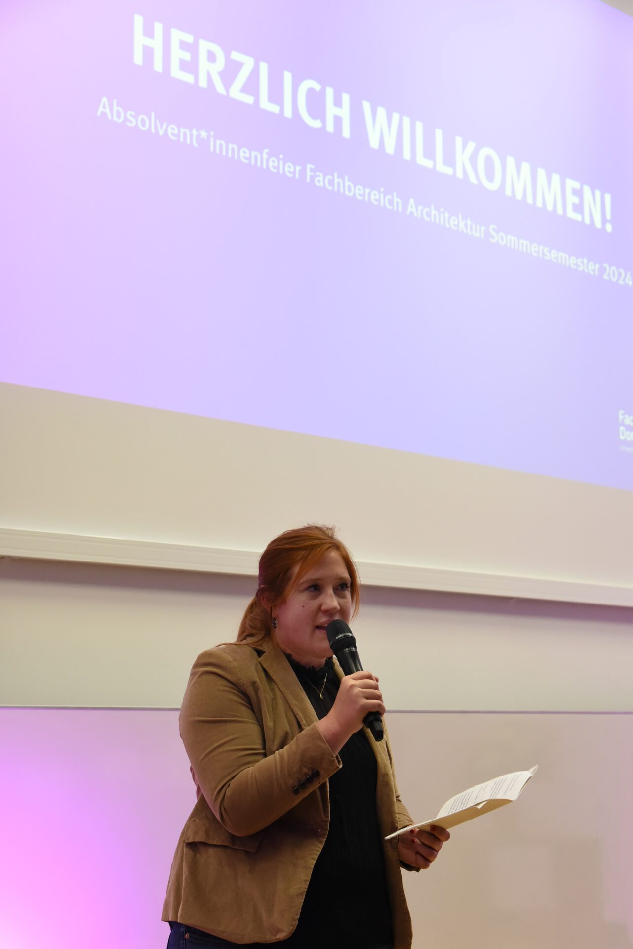 Prof. Christiane Fülscher held the farewell speech for the architecture graduates in the festively decorated foyer. Her words reflected both the pride in the students' achievements and the challenges they overcame during their studies. She concluded her speech with warm congratulations and the wish that the students would shape their professional future with the same dedication and curiosity that they had shown during their studies.