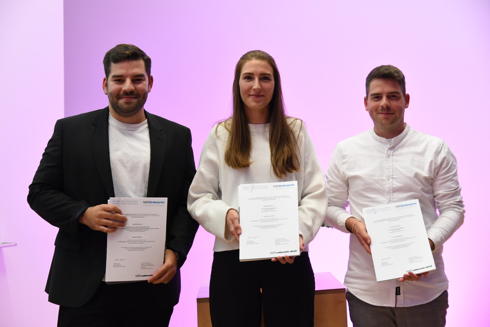 Students David Frankemölle, Dayna Hülsevoort and Yannick Packard received special recognition from the magazine "wettbewerbe aktuell" for their innovative and outstanding theses. In addition to a certificate, they each received a one-year subscription to the magazine.