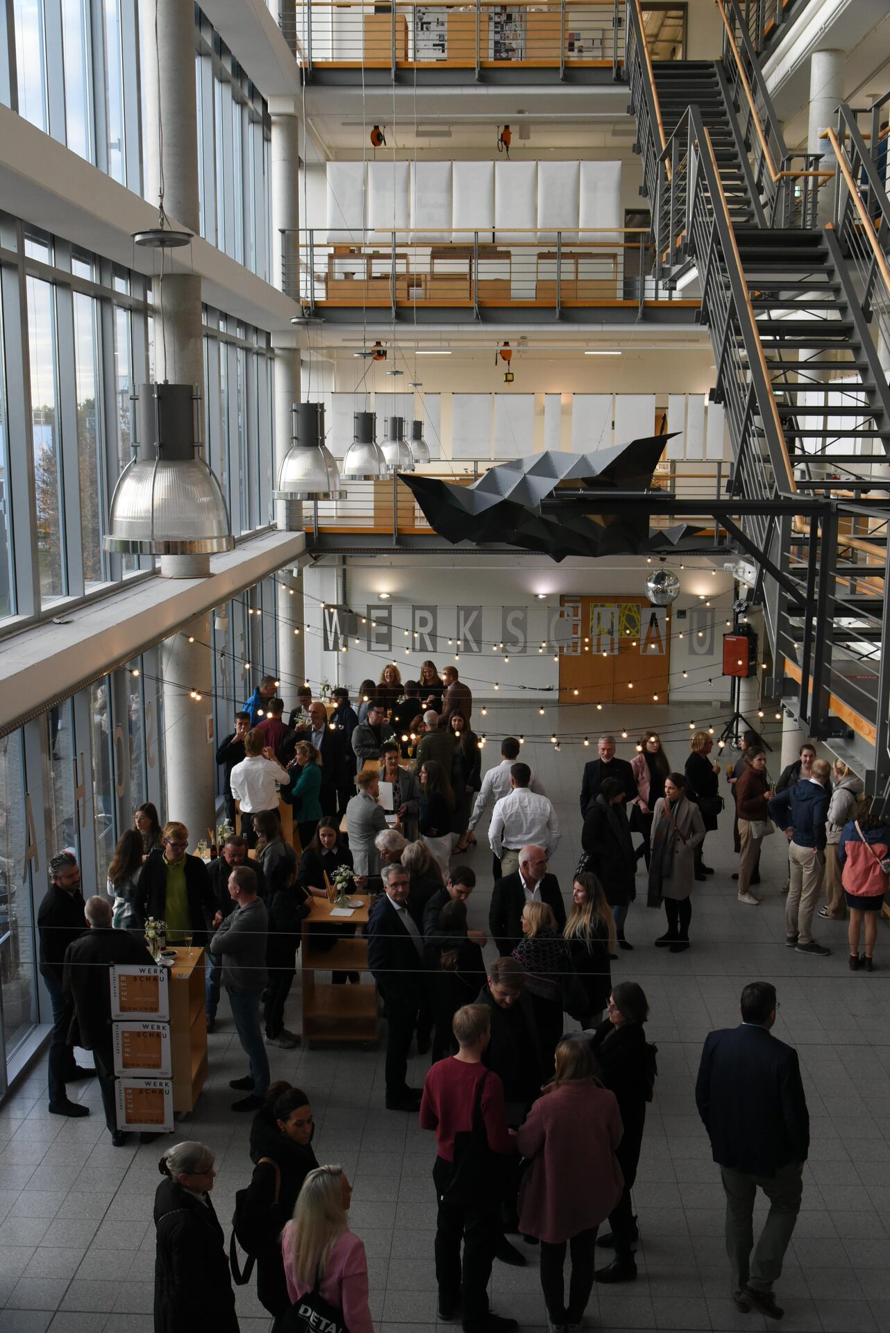 The official part of the event was followed by a champagne reception, during which the traditional exhibition of works was opened in the neighboring faculty building. A total of 17 graduation projects were exhibited on the galleries and in the main rooms. In addition to the graduates, their families and friends, external guests from surrounding architecture firms and cooperation partners also visited the exhibition. The recent graduates also had the opportunity to discuss specialist topics with former fellow students.