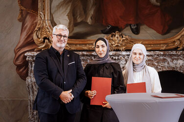 The faculty is delighted to have won an award in the 12th Schlaun Competition 2023|2024 entitled "Ideas for Cologne's Urban Axes". We congratulate Ms. Sude Baysal and Ms. Palwascha Raschid on their great success! The work was supervised by Prof. Diana Reichle and Dipl. Ing. Andrea Möhn as part of an interegated project. The award ceremony took place on June 09, 2024 at the Erbdrostenhof in Münster.
