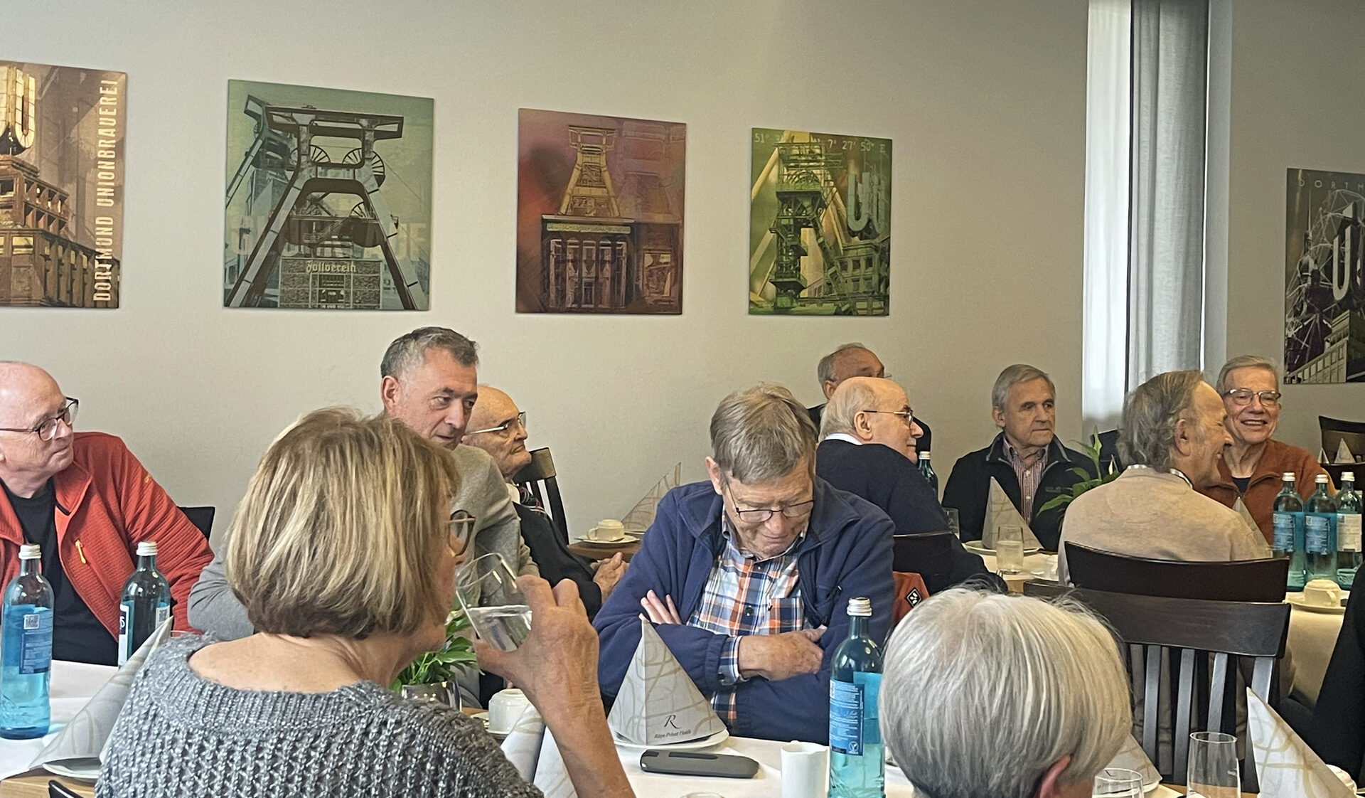 Im Anschluss blieb reichlich Zeit für Gespräche. Viele Ehemalige nutzten die Gelegenheit, gemeinsam in Erinnerungen zu schwelgen und Neues aus der Hochschule zu erfahren. Das Hotel Drees bot mit seinem klassischen Ambiente erneut den passenden Rahmen für das Treffen. „Es ist schön zu sehen, wie groß das Interesse bleibt und wie eng die Verbindung vieler Ehemaliger zur FH Dortmund noch immer ist“, resümierte das Organisationsteam der Hochschule. Besonders geschätzt wurde der persönliche Austausch mit Prof. Vogler, der sich auch nach seinem Vortrag noch lange den Fragen und Gesprächen der Gäste widmete.