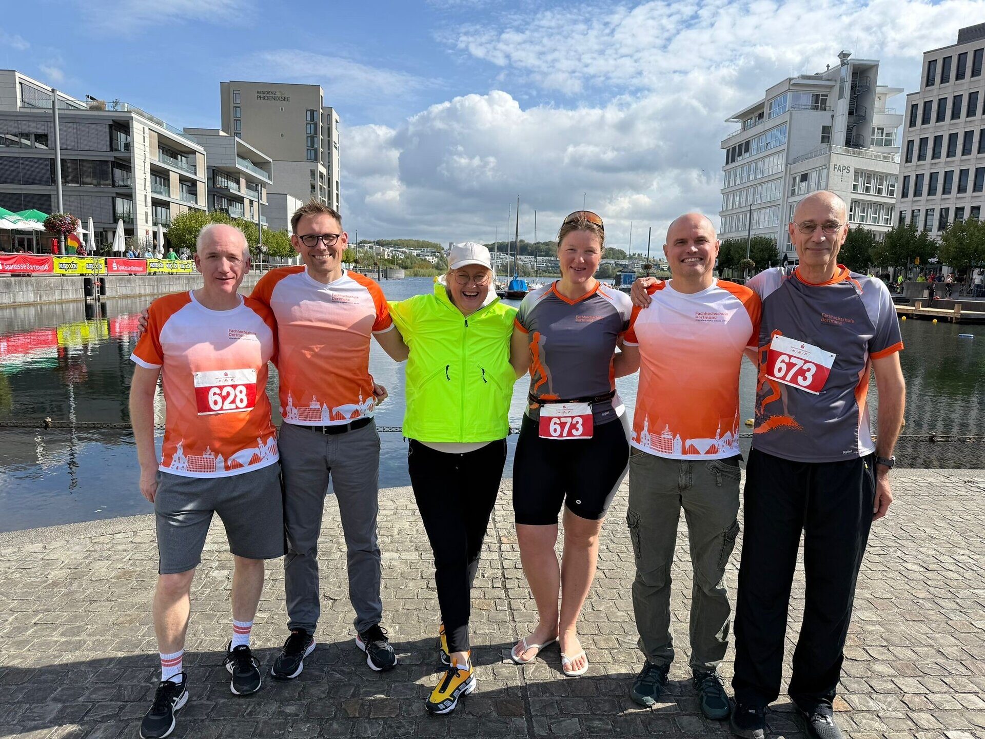 In der Mixed-Staffel-Wertung gab es insgesamt 37 Teams, drei davon von der FH, darunter auch Rektorin Prof. Dr. Tamara Appel als Schwimmerin. „Egal welcher Platz: Es hat riesig Spaß gemacht!“, resümiert sie begeistert und bedankt sich bei ihren Kolleg*innen für die Motivation, beim Triathlon zu wetteifern.