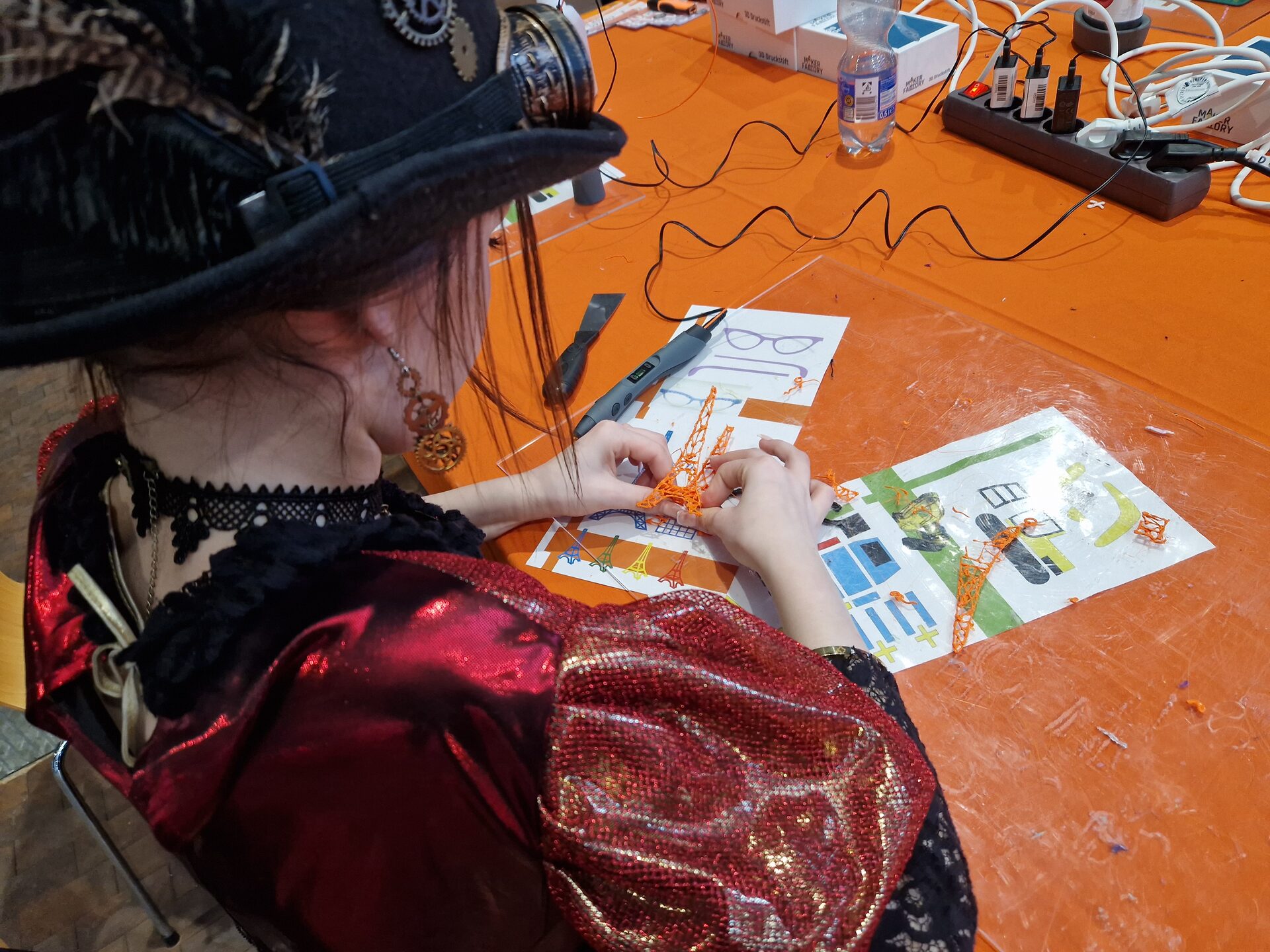 Außerdem gab es per Laser-Cutting erstellte persönliche Namensschilder mit Wunsch-Design. Das Team vom „FabLab“ gravierte die Unikate live aus Holz – direkt zum Mitnehmen. Zusätzlich entstanden an mehreren 3D-Druckern und mit 3D-Stiften kleine Give-aways für die Besucher*innen. Unter denen waren auch einige Studieninteressierte, die sich nach dem Motto „Mach was mit Wissen“ über das Studienangebot (Öffnet in einem neuen Tab) der FH informierten.