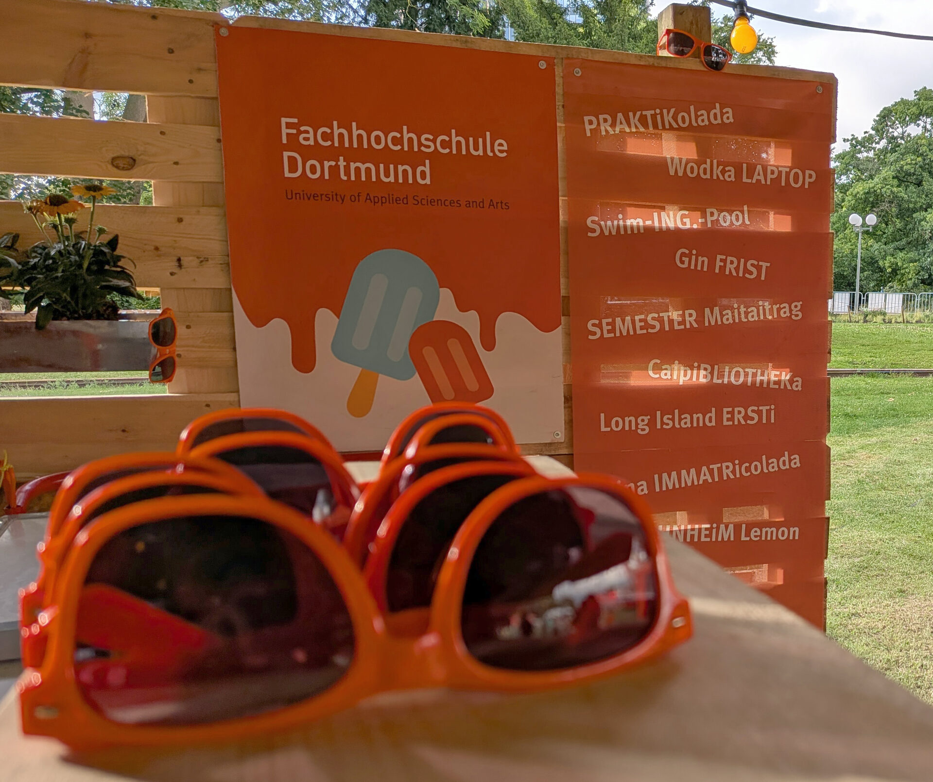 At "Juicy Beats", 34,000 people celebrated at the weekend (July 25/26, 2025) in Fachhochschule Dortmund's Westfalenpark with live acts such as Zartmann, Montez, Alexander Markus and Tream on the main stage and Cari Cari, Milleniumkid, Lari Luke and Kasi on the second main stage opposite the FH Lounge. Here there was a particularly popular accessory that was always in demand and is now immortalized in many festival photos: the striking orange FH sunglasses. Students handed out around 12,000 pairs of glasses to festival visitors and also provided them to people working in the glaring sun at the drinks stands. And for families with children and for the security staff, the UAS had packed and distributed orange-branded tubes of sun cream.