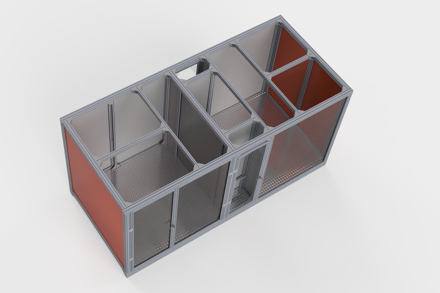 The safety standards of the system are significantly higher than those of conventional building systems. This is due, among other things, to the stricter regulations in the transport sector, which must be complied with when building a mobile system.